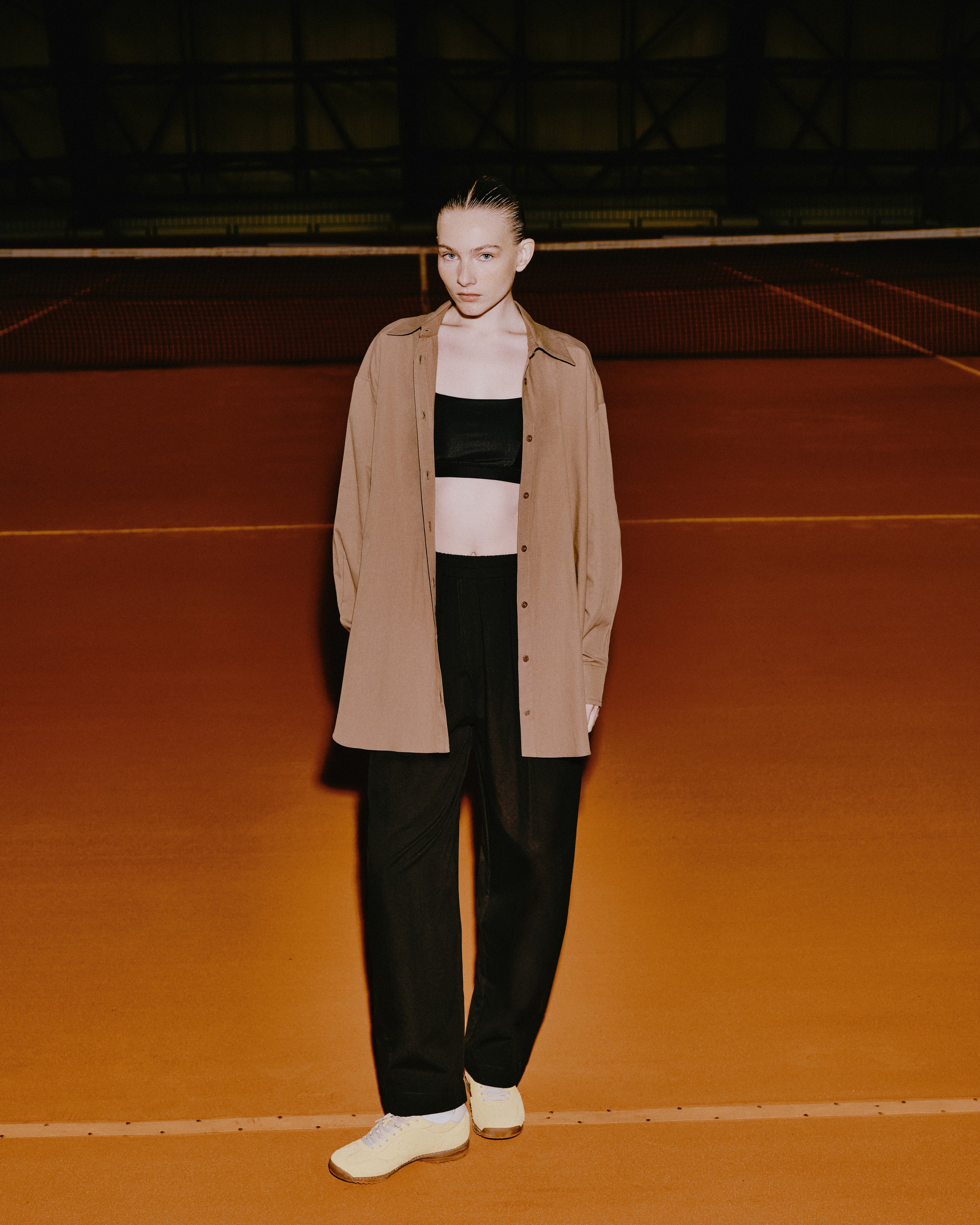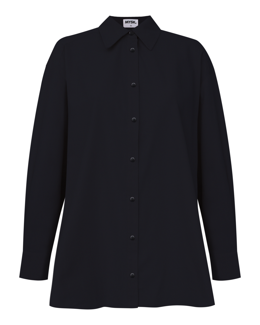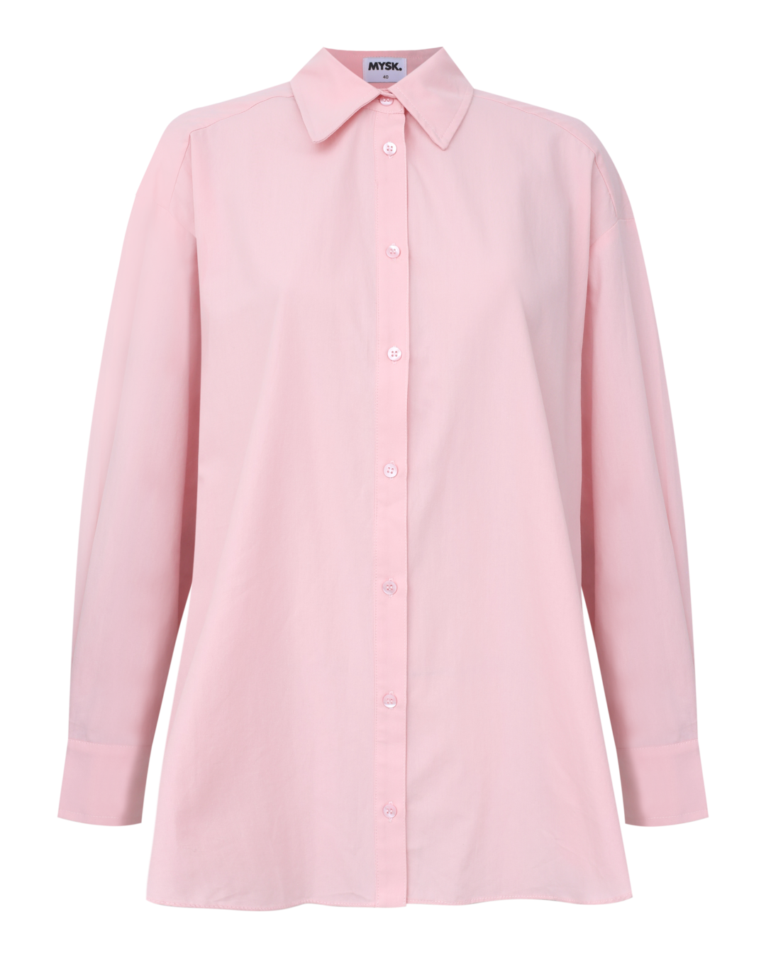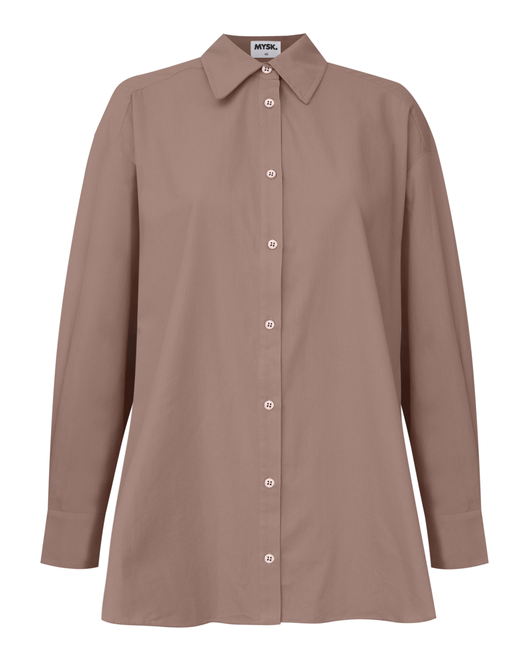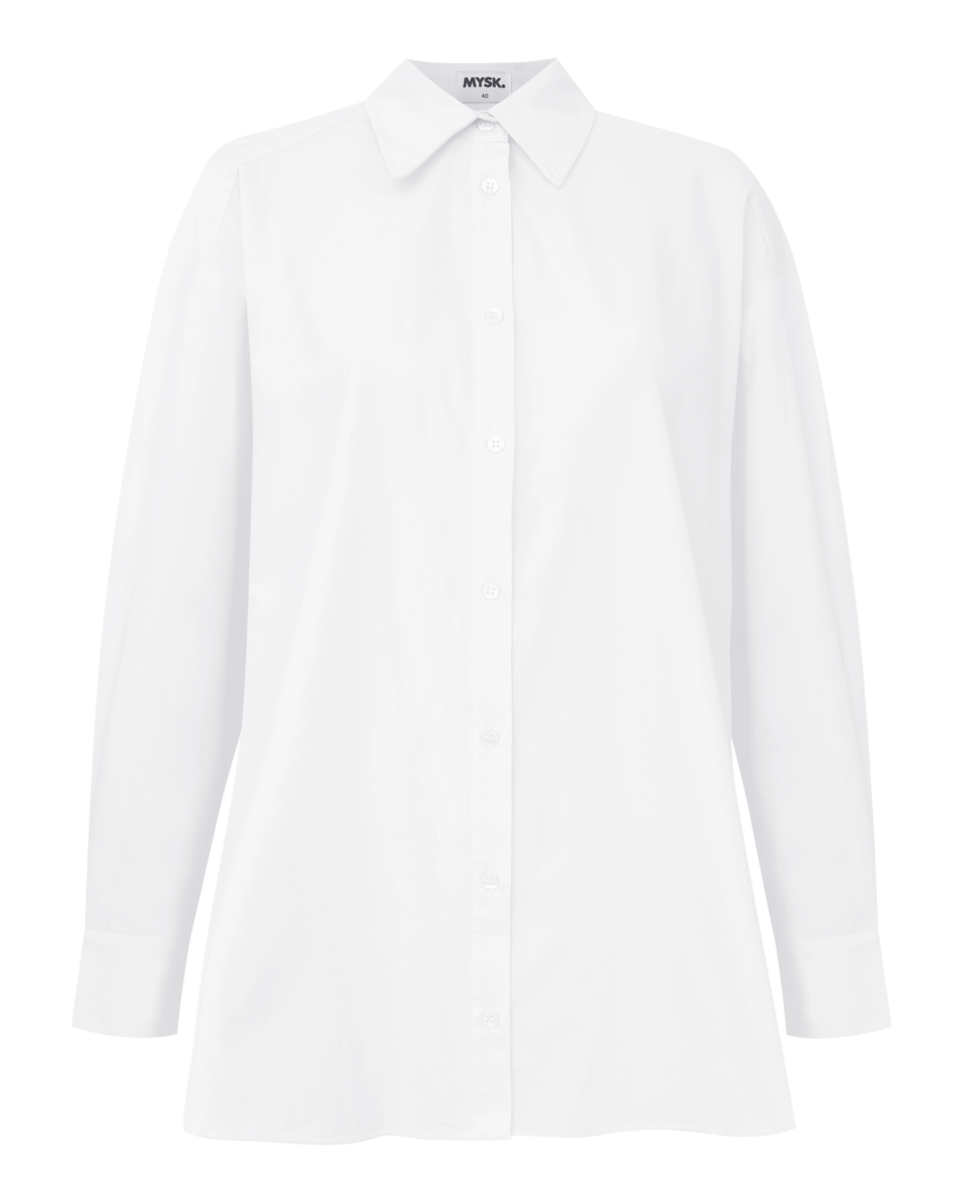 Camisa de tricoline, gola clássica, fechamento por botões e silhueta ampla.